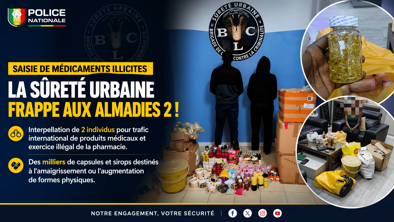 Dakar : saisie de médicaments illicites aux Almadies 2, deux suspects arrêtés Posted on: 21/04/202621/04/2026