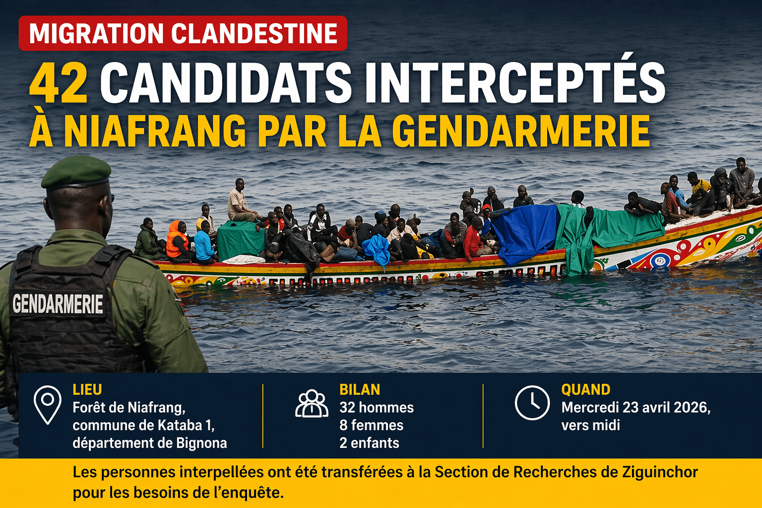 A la Une , Actualité , Société Migration clandestine : 42 candidats interceptés à Niafrang par la gendarmerie Posted on: 23/04/2026