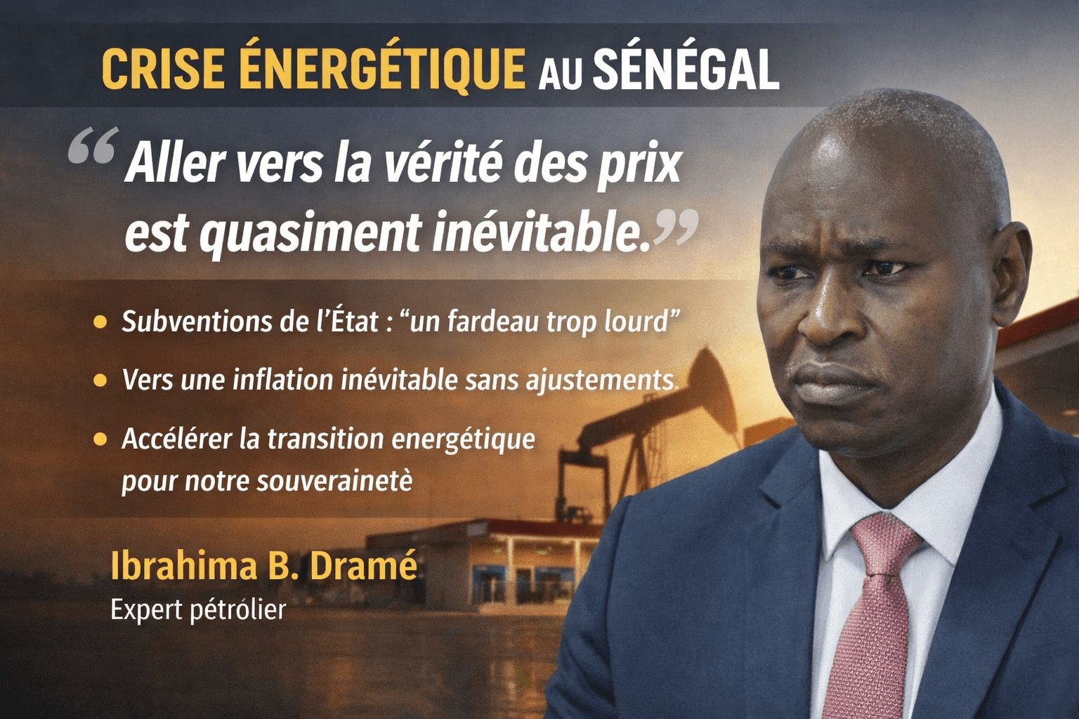 Face à cette situation, l’expert pétrolier et consultant international Ibrahima Bachir Dramé estime qu’« aller vers la vérité des prix est quasiment inévitable ».